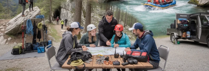 Sur place, l’équipe se compose généralement d’un directeur de séjour, de guides spécialisés (montagne, eaux vives, spéléologie, etc.) et parfois d’un logisticien en charge des transferts et de l’intendance. Le ratio encadrants/participants est volontairement limité, souvent autour de 1 pour 6 à 8 adultes, afin de garantir réactivité et suivi individuel. Avant chaque départ, une réunion de briefing permet de rappeler le programme, les règles de vie collective, les consignes de sécurité et les procédures d’urgence (liaison radio, numéros de secours, zones de repli).